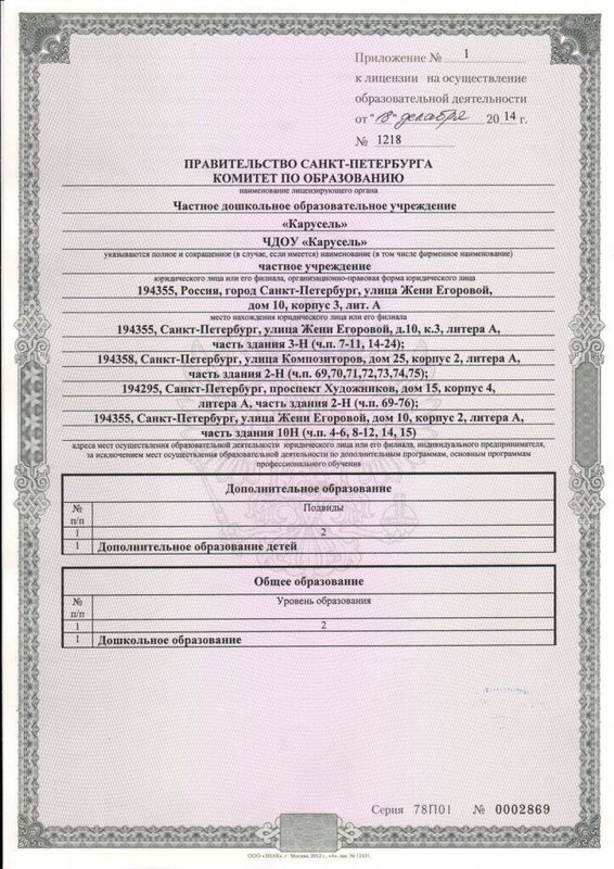 Здесь нежно развивают интеллект ребятишек и подготавливают их к взрослой жизни в новейшей информационной эпохе. Педагоги не только занимаются адаптацией к детскому саду и школе, уча разным навыкам и техникам социализации. Именно после таких занятий детки начинают осознавать себя как взрослые личности и уже в нежном детстве начинают осознавать, чем хотят заниматься в будущем. Дети - это наше будущее, а значит, им стоит отдавать все самое лучшее. Частный детский сад Карусель предлагает вам достойное место, где готовы развивать интеллект ваших детей, учить их навыкам общения, нести идею настоящей дружбы, а также учить их не избегать всех препятствий, которые могут встретиться на жизненном пути.